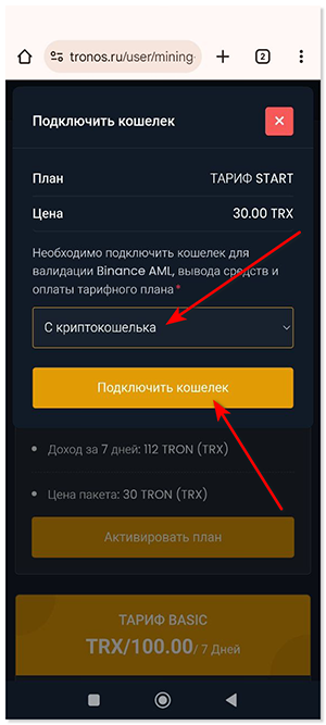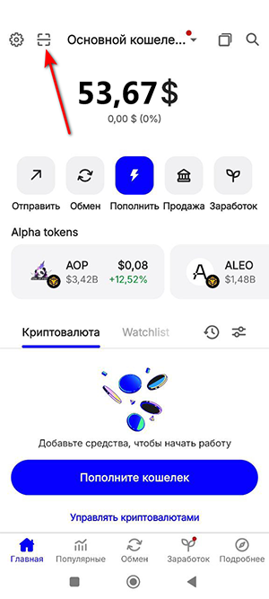 Рекомендуем для подключения использовать смартфон с уже установленным в нем криптокошельком.