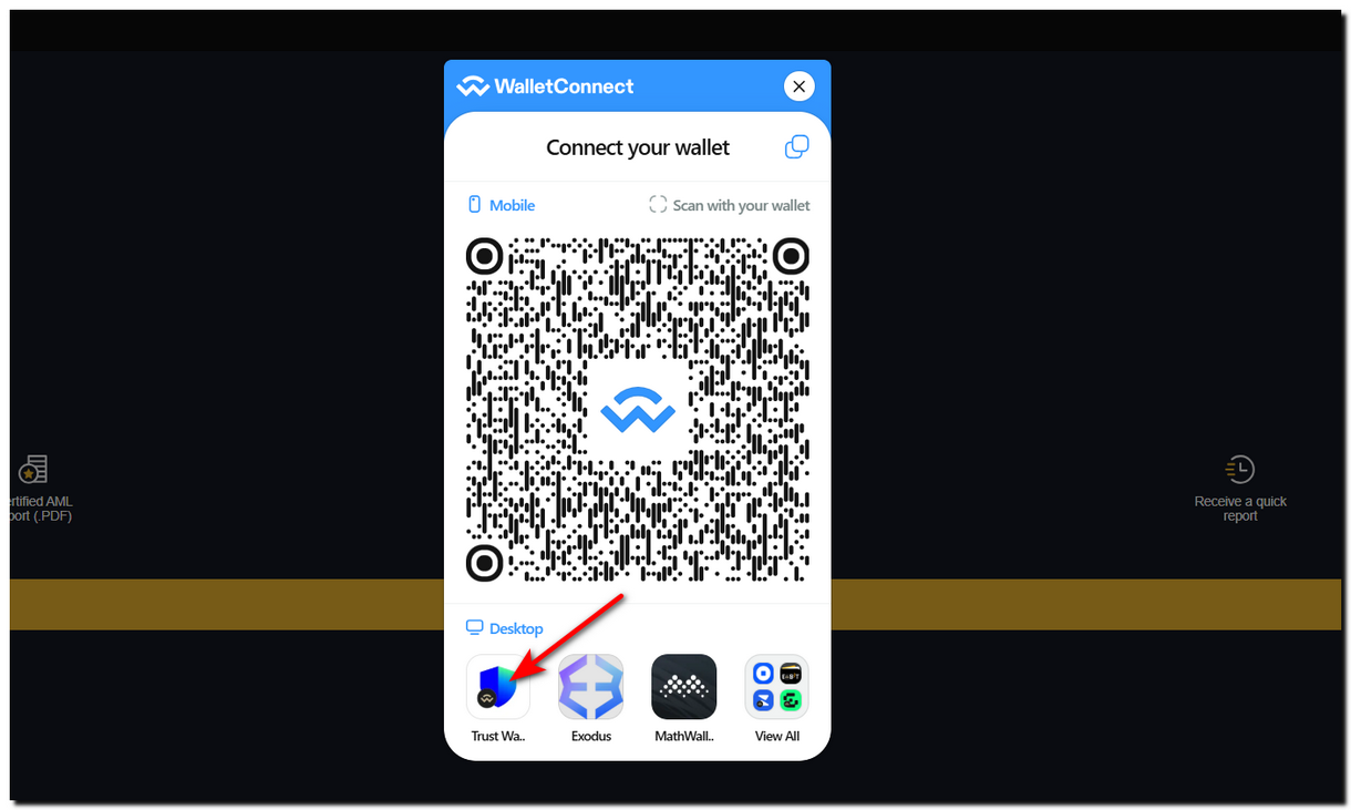 Выбираем кошелек Trust Wallet, как показано на рисунке